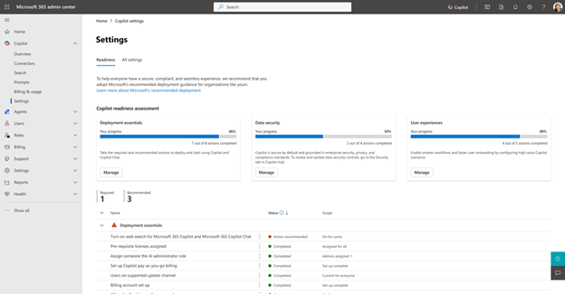 A new Copilot readiness page in the Microsoft 365 admin center helps admins bring structure and clarity to Copilot setup and rollout.