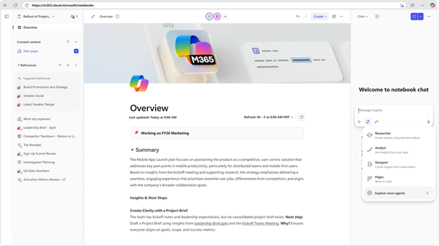 Users can now ground an agent on a Copilot Notebook, letting it work directly from your references and materials. Grounding helps the agent stay aligned with the context of your work, so responses are more relevant, consistent, and tailored to the information you’re using.
