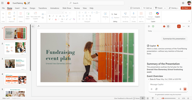 Users now have greater control when making presentations with Copilot in PowerPoint. You can guide the deck’s length, choose the narrative tone, and select the overall slide style. You can also include AI-generated images to support your content. This makes it easy to tailor presentations for different audiences and purposes right from the first draft.